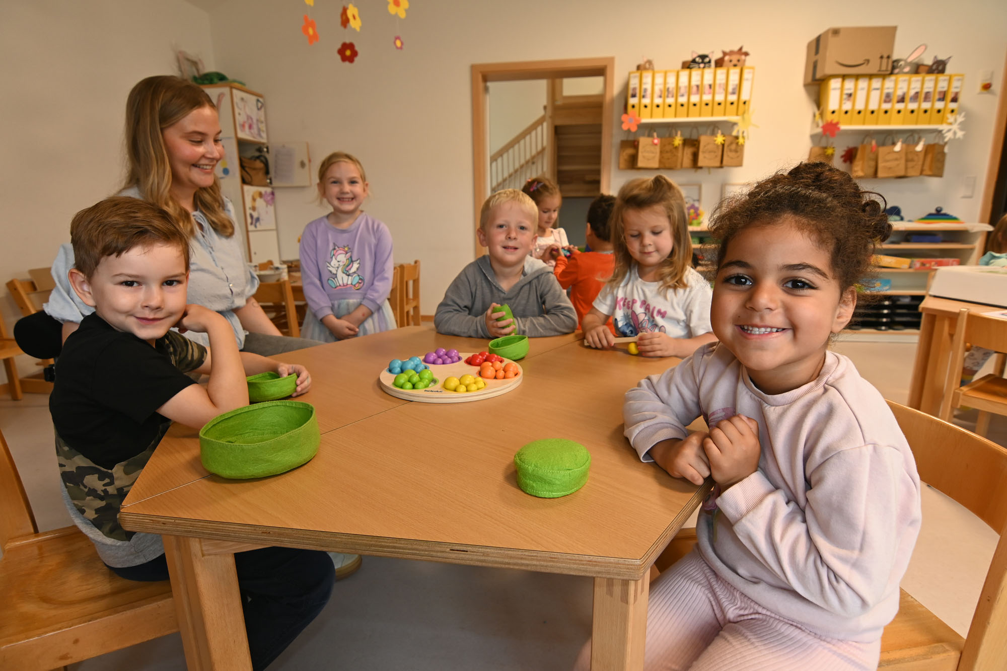 Alle Gruppen sind nun besetzt. Die Kinder wechseln vom Flur/Turnraum in ihre Gruppe.