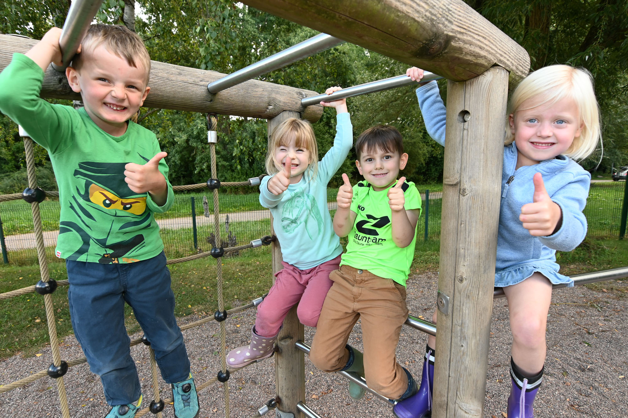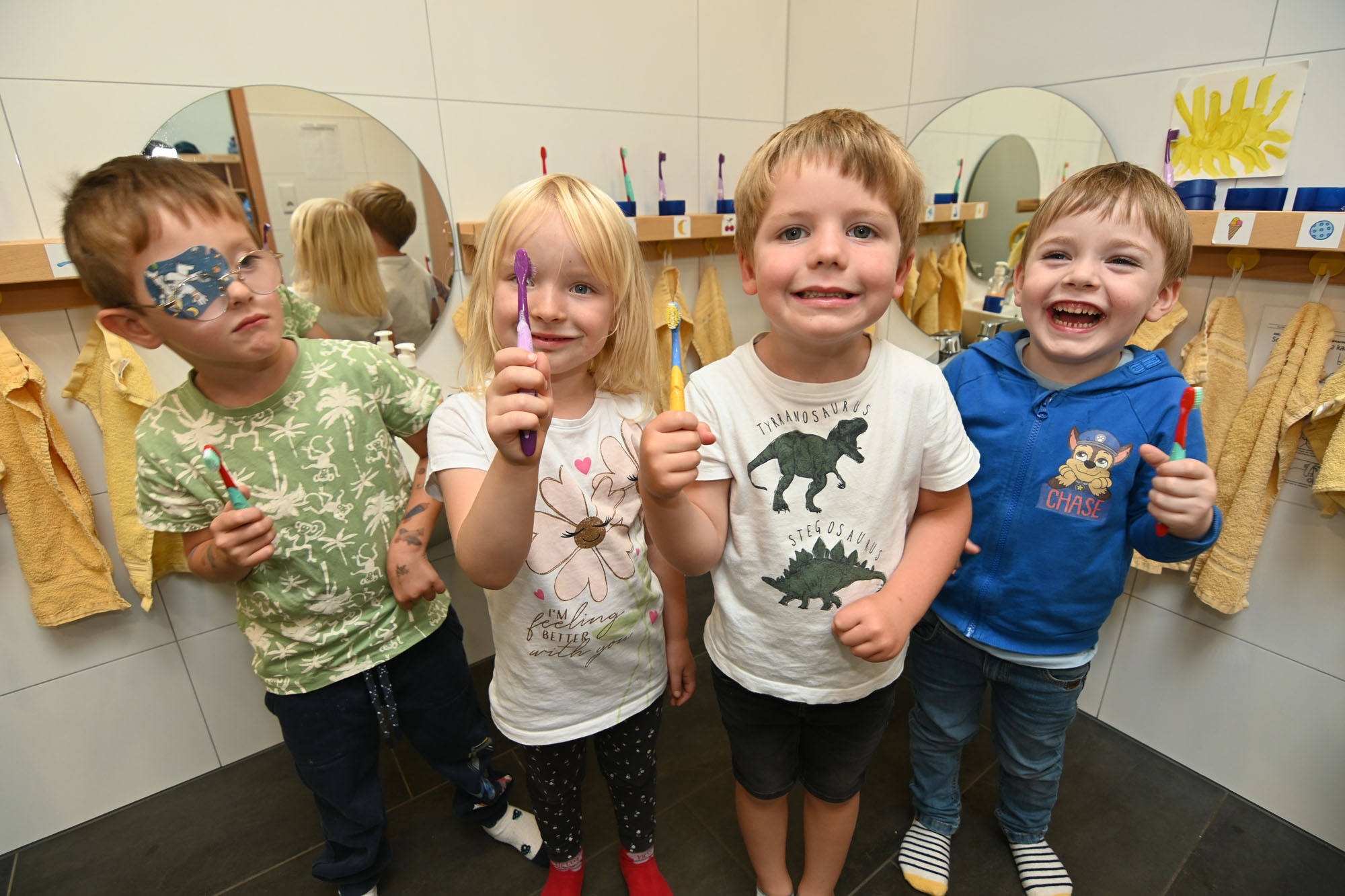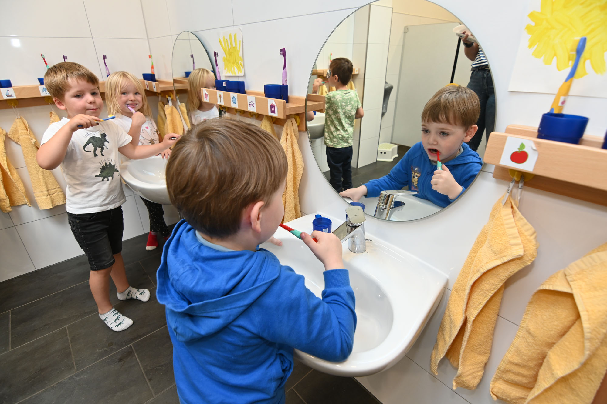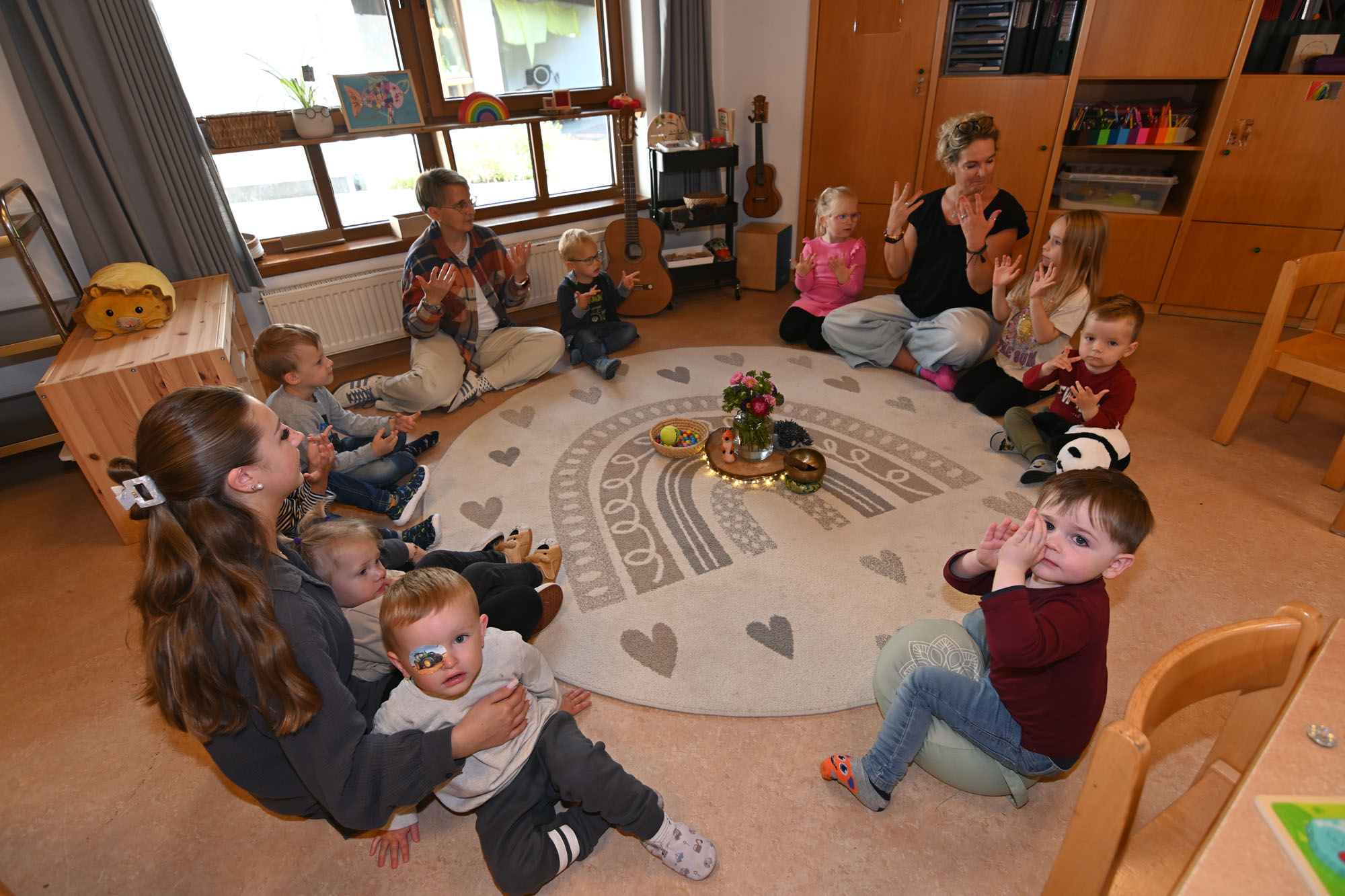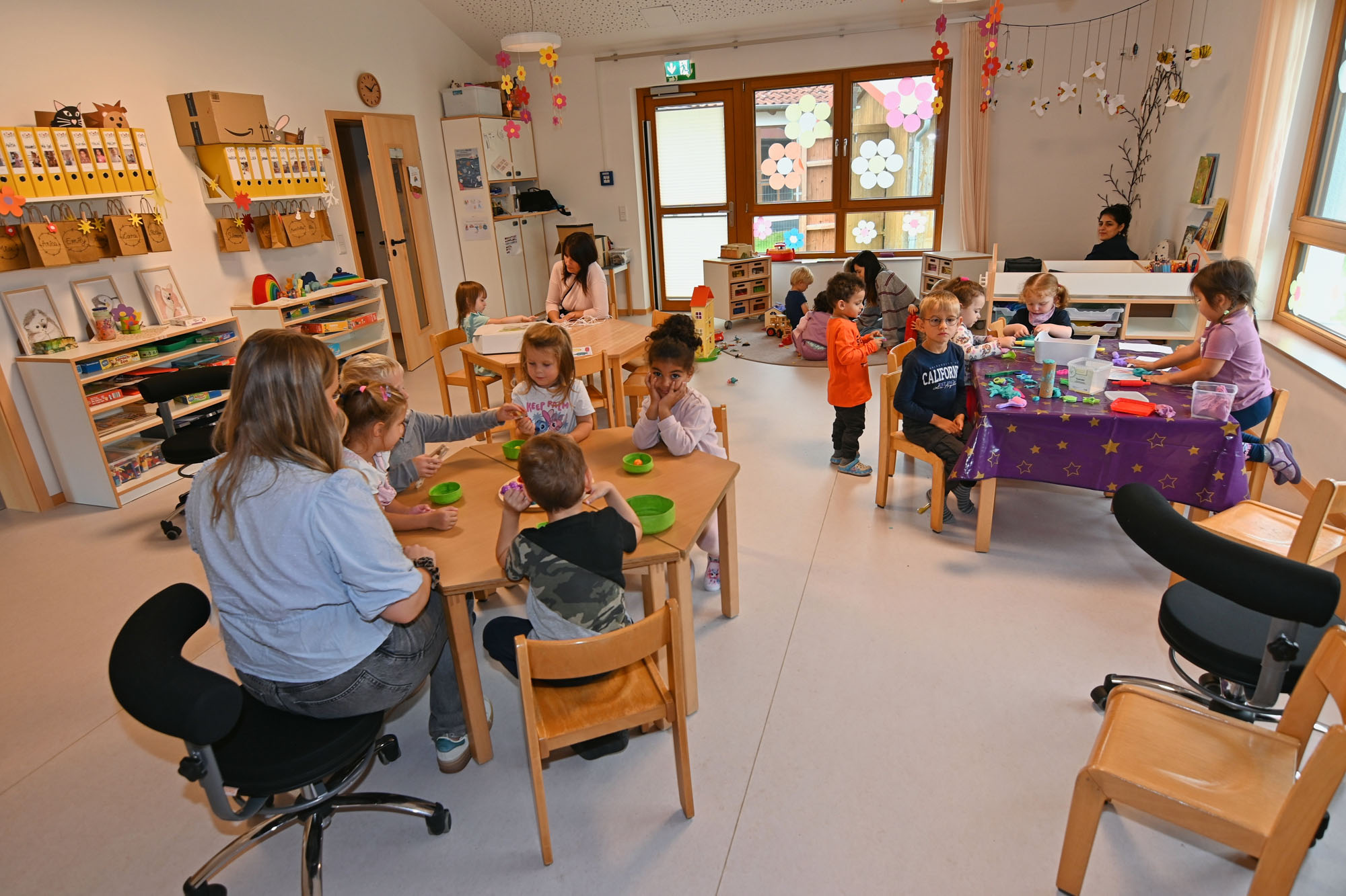 Alle Gruppen sind nun besetzt. Die Kinder wechseln vom Flur/Turnraum in ihre Gruppe.